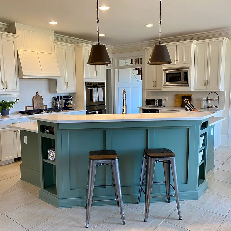 We love incorporating under-cabinet lighting in the cooking area. It serves as functional task lighting for meal prep and other tasks. The resulting ambiance also showcases your range and hood vent, countertops, and cabinetry for their visual appeal.